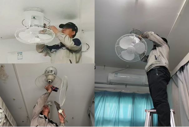 为积极应对高温酷暑,切实保障学生在校学习生活的舒适度。近日,后勤管理处联合学工部公寓中心共同开展了学生公寓风扇专项清洗检修服务。此次活动旨在为同学们营造一个清凉、健康、安全的宿舍环境,送上夏日里的一份贴心关怀。