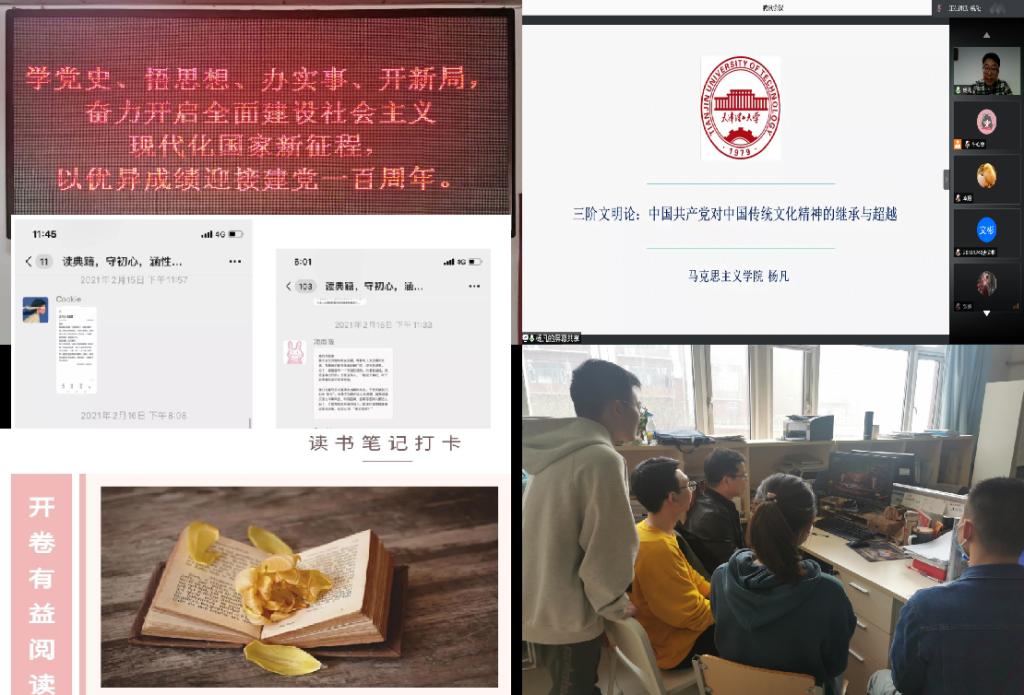 学院坚持党委示范、中心组领学、党员带头、全员参与,通过线上线下联动、深学细研相结合的方式,注重将党史学习融入日常、抓在经常,迅速掀起学习热潮。3月24日学院党委面向全体教师和学生党员进行党史专题宣讲,邀请党史宣讲团成员杨凡老师作首场党史学习辅导报告;各支部利用《论中国共产党历史》《中国共产党简史》书籍和视频资料,深入开展党史专题学习研讨;坚持党建带团建,组织团学骨干先学一步、学深一步,示范带动广大学生学史明理、学史力行;加强宣传引导,依托电子屏、学院网站、微信平台、红色书吧等,组织“开卷有益 阅读经典”读书活动,研究开辟“化院党史学堂”微信专栏,营造浓厚的学习氛围。