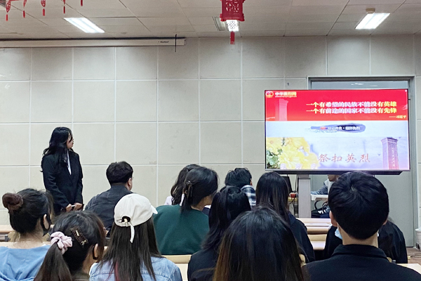 理学院组织学生集中观看天津市“弘扬英烈精神 奋进新时代”主题团日活动直播,紧密结合“清明云祭奠”、“文明清明树新风”进社区宣讲等活动,缅怀英烈,致敬百年。