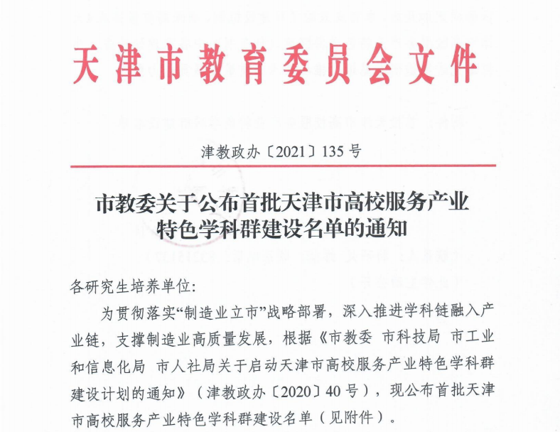 我校4个学科群入选首批天津市高校服务产业特色学科群建设名单