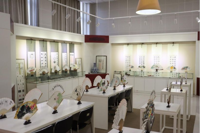学校于近日举办“怀袖雅物文人扇,清风守正蕴廉心”扇面艺术展。