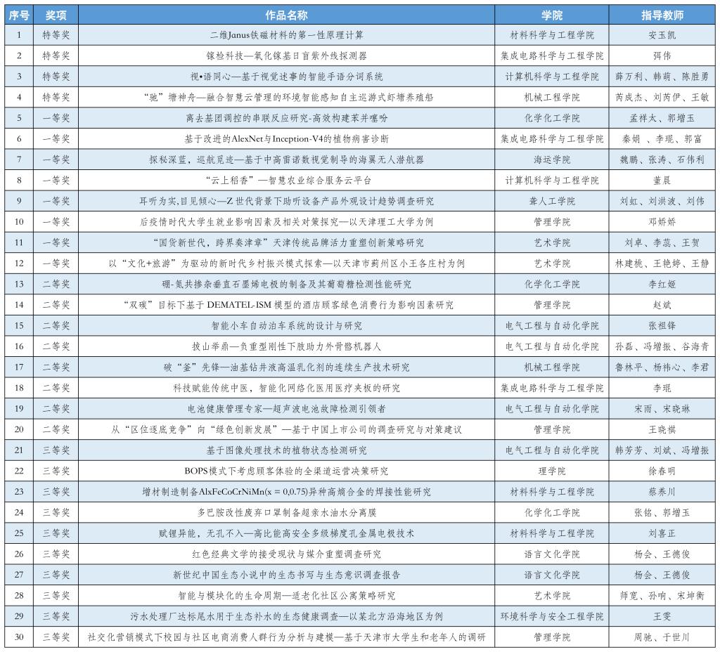 5月26日至27日,第十七届“挑战杯”天津市大学生课外学术科技作品竞赛终审决赛答辩在天津工业大学举行。我校共有30项作品获奖,其中特等奖4项、一等奖8项、二等奖8项、三等奖10项。4项特等奖作品全部被推荐参加“挑战杯”国赛。本届竞赛我校学生作品的获奖总数、各等级获奖数、进入国赛项目数均取得优异成绩。
