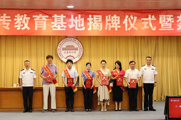 孙希明和叶宁共同为学校禁毒宣传教育基地揭牌,为市戒毒管理局禁毒宣传形象大使颁发聘书。