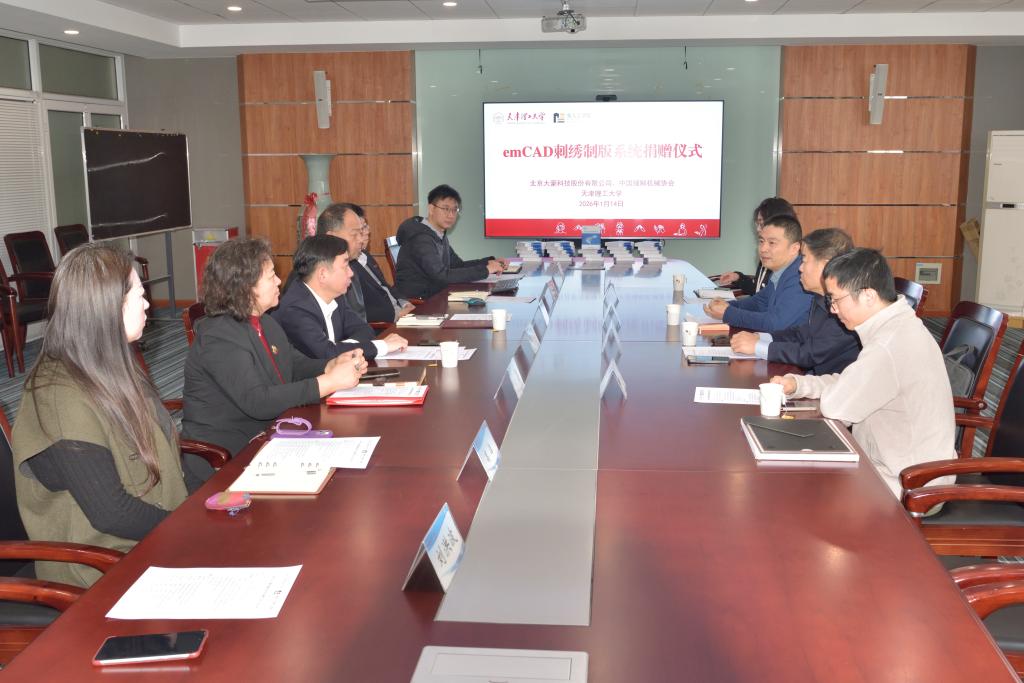 1月14日下午,大豪emCAD刺绣制版系统捐赠仪式在我校聋人工学院举行。北京大豪科技股份有限公司党委书记刘建明,中国缝制机械协会副理事长兼秘书长陈戟,党委常委、副校长叶宁出席仪式。校教育发展基金会、聋人工学院相关负责人及师生代表参加活动。