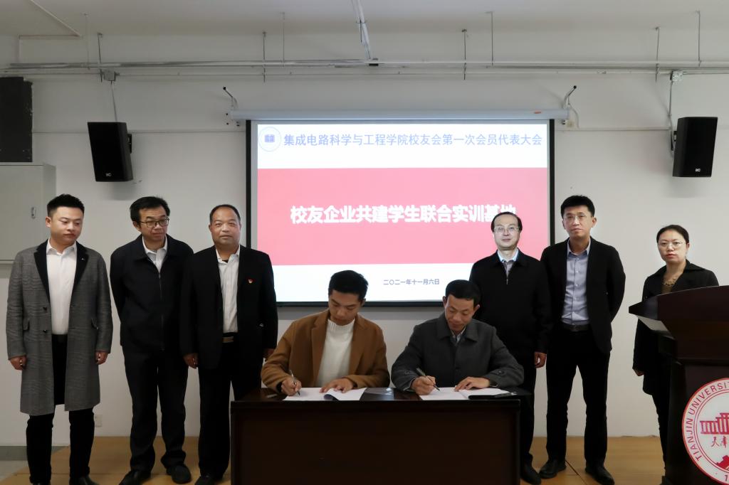 会议表决通过《天津理工大学集成电路科学与工程学院校友会章程(试行)》并选举产生集成电路科学与工程学院校友会第一届理事及监事人选名单。校友会第一届理事会选举产生理事长、副理事长、秘书长,提名审议通过副秘书长人选名单。最终,集成电路科学与工程学院学院81级校友,天津市教学名师吕联荣当选集成电路科学与工程学院校友会第一届理事长。会议最后,学校校友办及学院有关负责人向学院校友会主要负责人及骨干成员颁发聘书,并与校友企业签署共建学生联合实训基地协议。