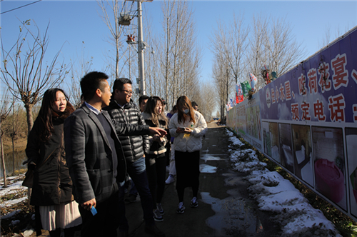 艺术学院有关负责人同蓟州区下窝头镇相关负责人及我校驻村工作队全体成员展开座谈,就乡村环境提升、乡村特色文化产业发展、大学生劳动教育等工作进行了探讨交流,并针对乡镇发展、乡村振兴过程中出现的问题及未来发展方向提出建设性意见。活动人员共同深入乡村街道、田野、景区进行实地考察调研,环艺系师生围绕乡村建筑、道路、河道与景观特点进行实地测量与记录,并将实践真题带回课堂、带入毕业设计,“设计赋能乡村振兴”将在师生的教与学中落实落地。