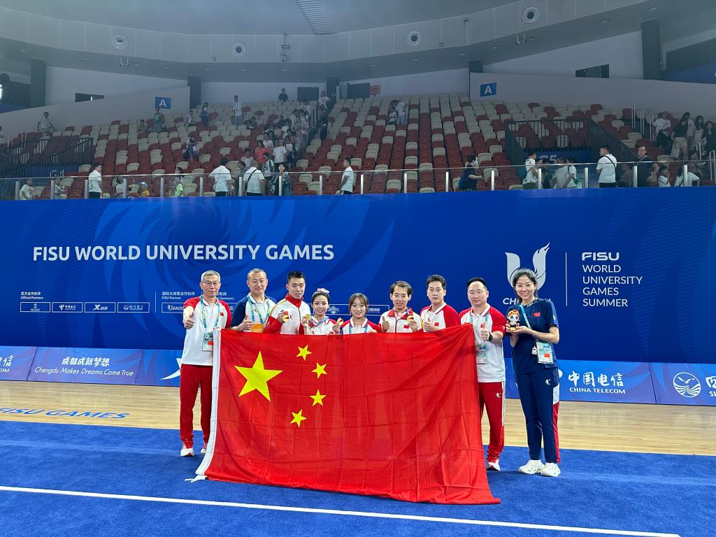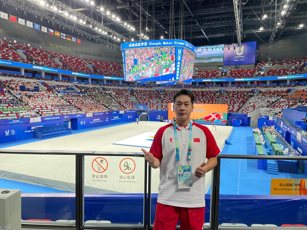 “不积跬步,无以至千里”是他经常用来与学生共勉的话,他认为,武术与读书一样,是一个需要长期付出辛劳的过程,不能心浮气躁、浅尝辄止,应当先易后难、由浅入深,循序渐进、水滴石穿。作为第31届世界大学生夏季运动会中国代表团武术套路队教练,他随队出征、科学施训,不断给予队员悉心的鼓励和指导。”在2023年7月29日男子长拳和30日男子刀术2个武术项目比赛中,我校管理学院本科生金哲典以稳定的发挥和极为出色的表现均以高分夺冠,成为成都世界大学生夏季运动会的“双冠王”,在世界赛场绽放了天理学子的青春风采,为祖国和人民赢得了荣誉。“这是厚积薄发的结果,也是心态上的胜利”,赛后唐玄戈和队员金哲典像往常一样复盘分析,“比赛就是尽己所能,展示平时训练的成果,咱们要做的就是不在乎得失,往前冲就是了。”另外,成都大运会期间,唐玄戈还带领队员们“以武会友”,与国内外优秀武术运动员交流学武心得、切磋武术技艺,向世界传播中华武术文化。
